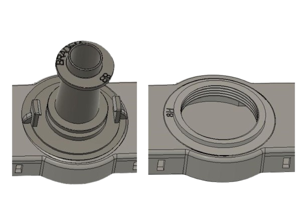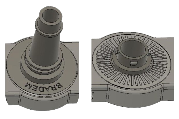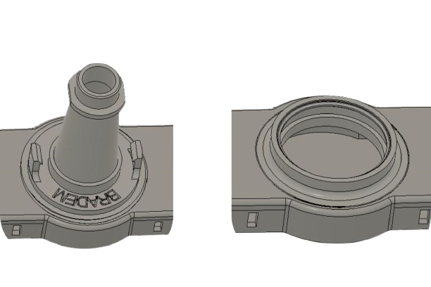 C’est la pièce centrale de BRADEM, on y visse sur sa face supérieur l’embout de fixation qui correspond à votre lave-vaisselle, et on y clipse sur les cotés 2 demi-bras, qui une fois monté donnera l’apparence et la fonctionnalité d’un bras de lavage classique.